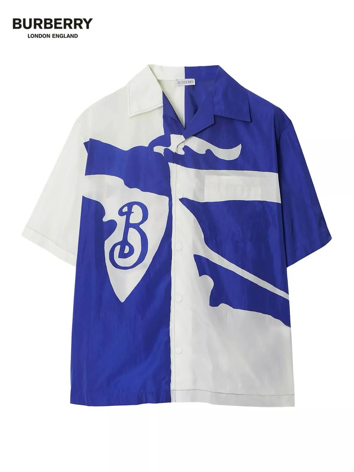 BURBERRY || Equestrian Knight Two-Tone Satin Shirt Men
