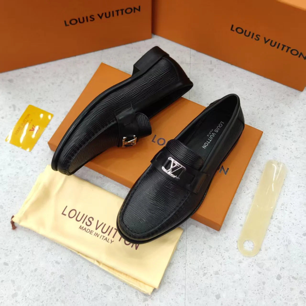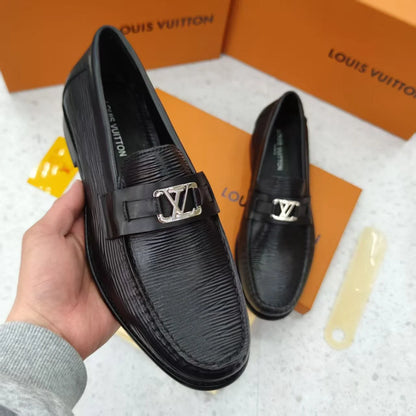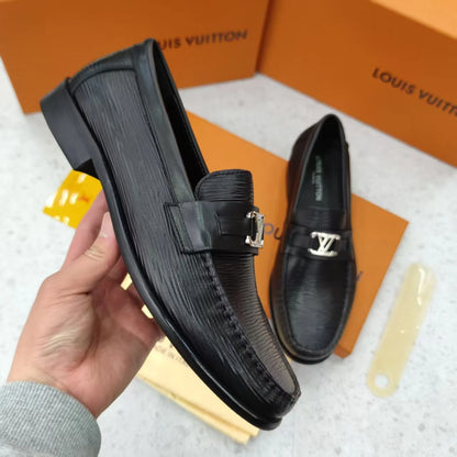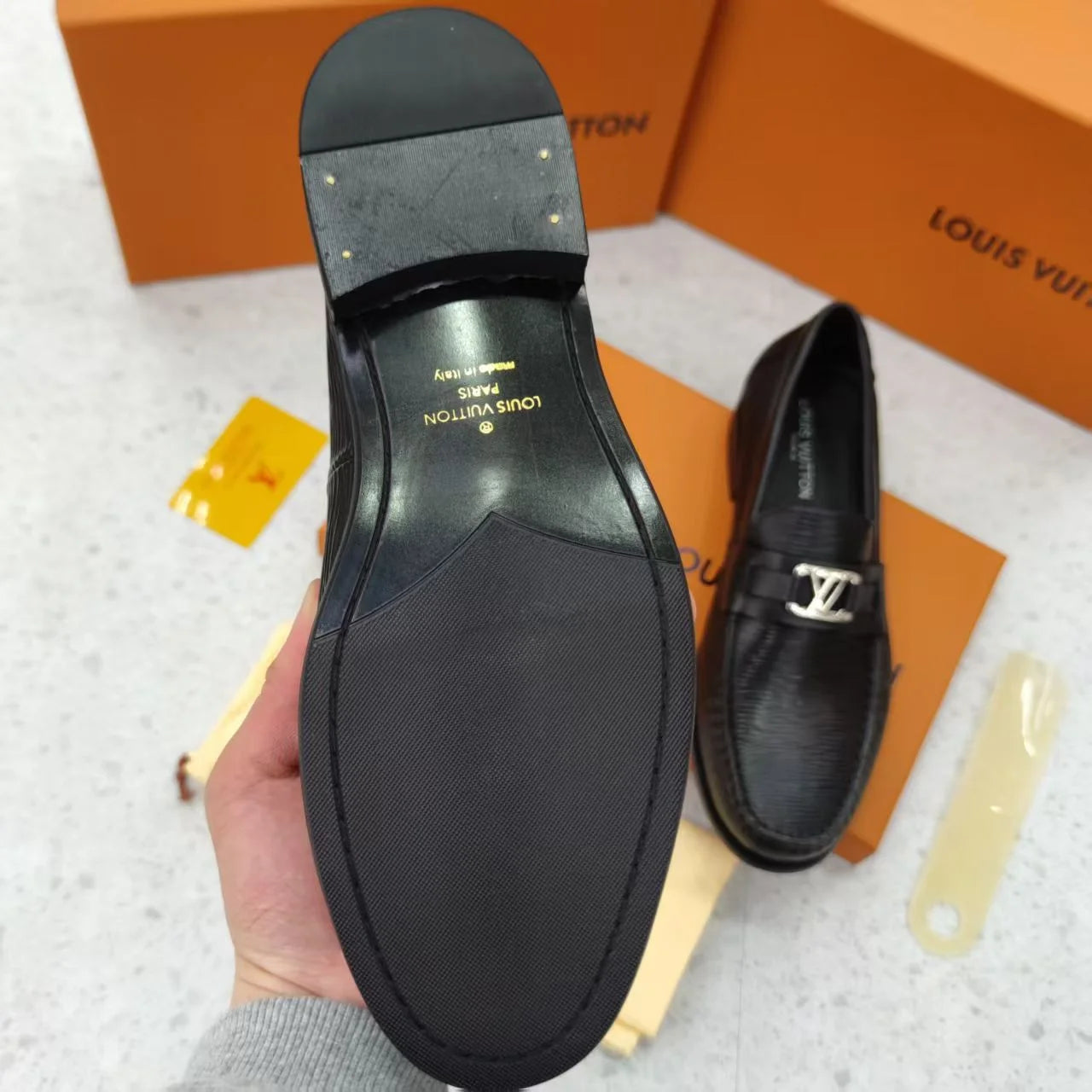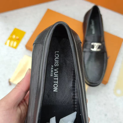 LOUIS VUITTON || Black Leather Loafers with Silver LV Buckle | Made in Italy