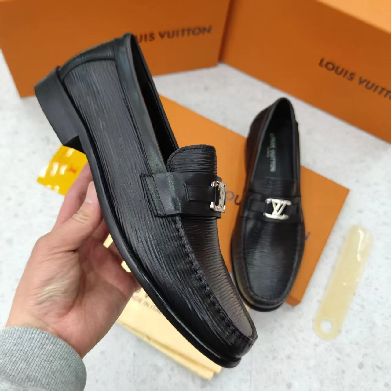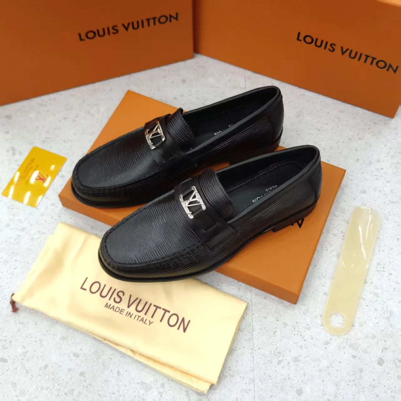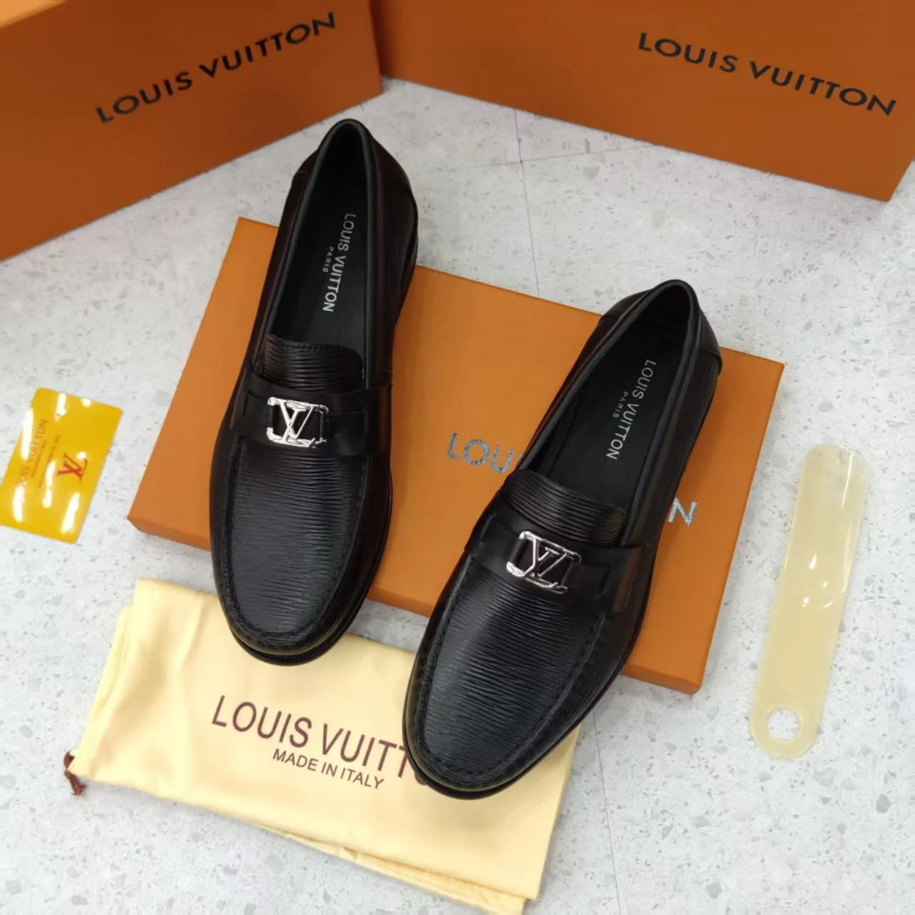 The signature silver LV hardware on the strap makes a statement of sophistication and status. Crafted for comfort and style, they’re ideal for formal events, corporate settings, or upscale evenings.