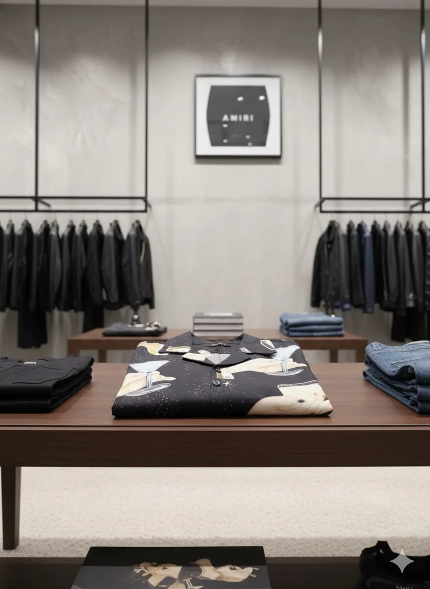 Detailing: Subtle AMIRI cursive script integrated into the graphic.