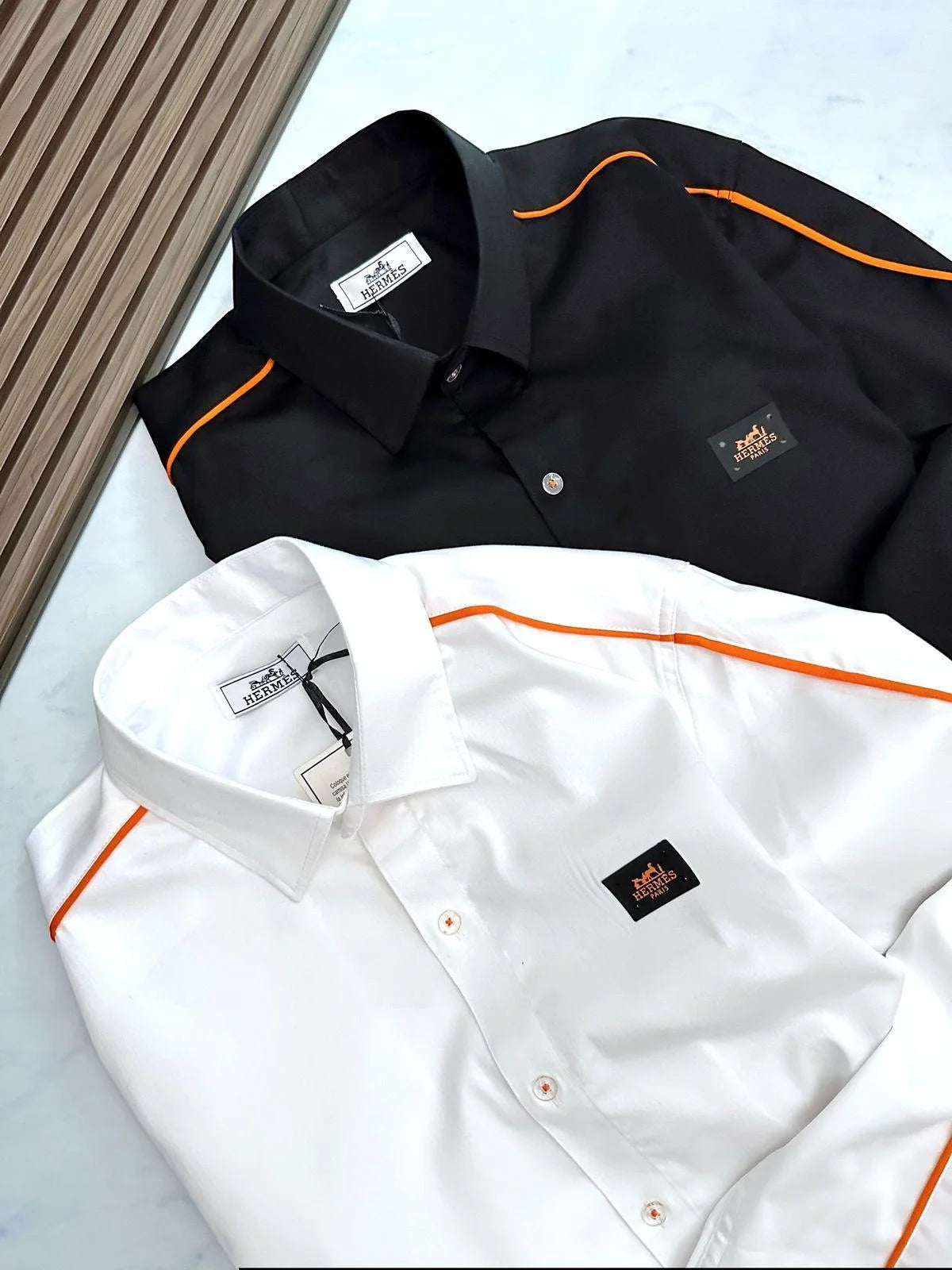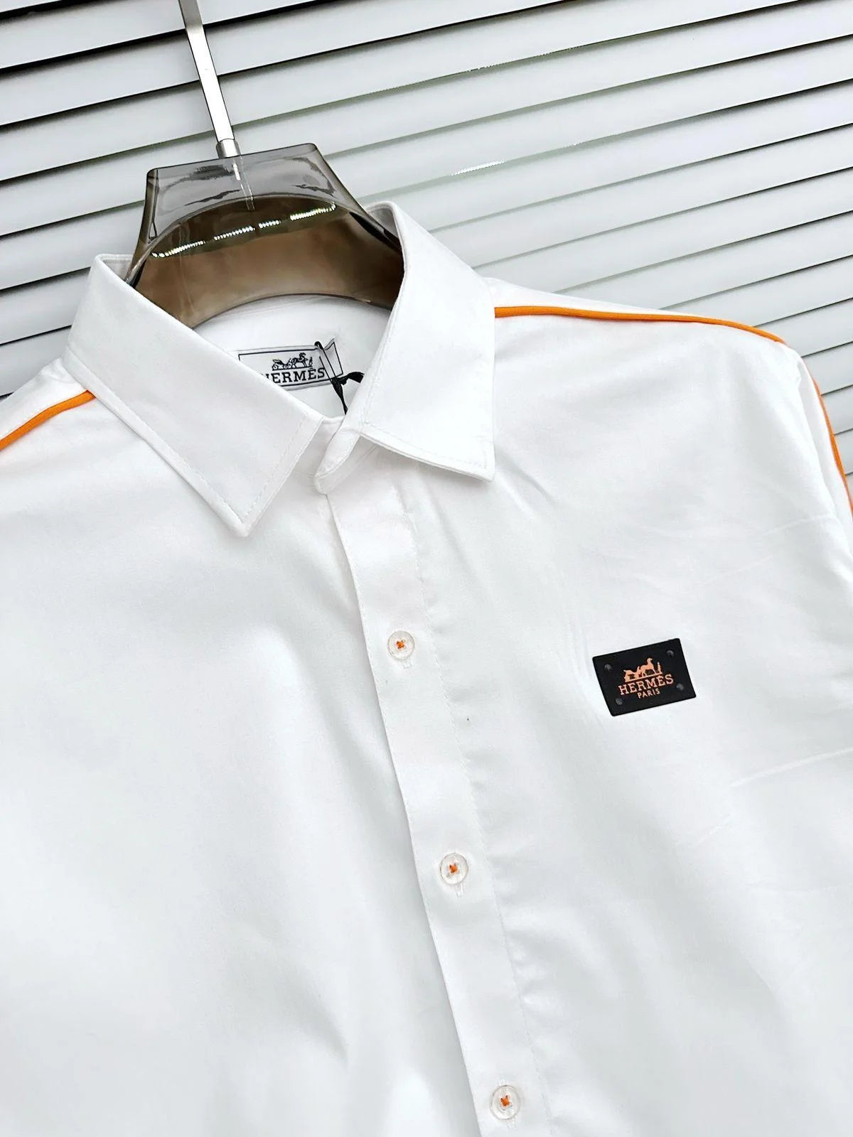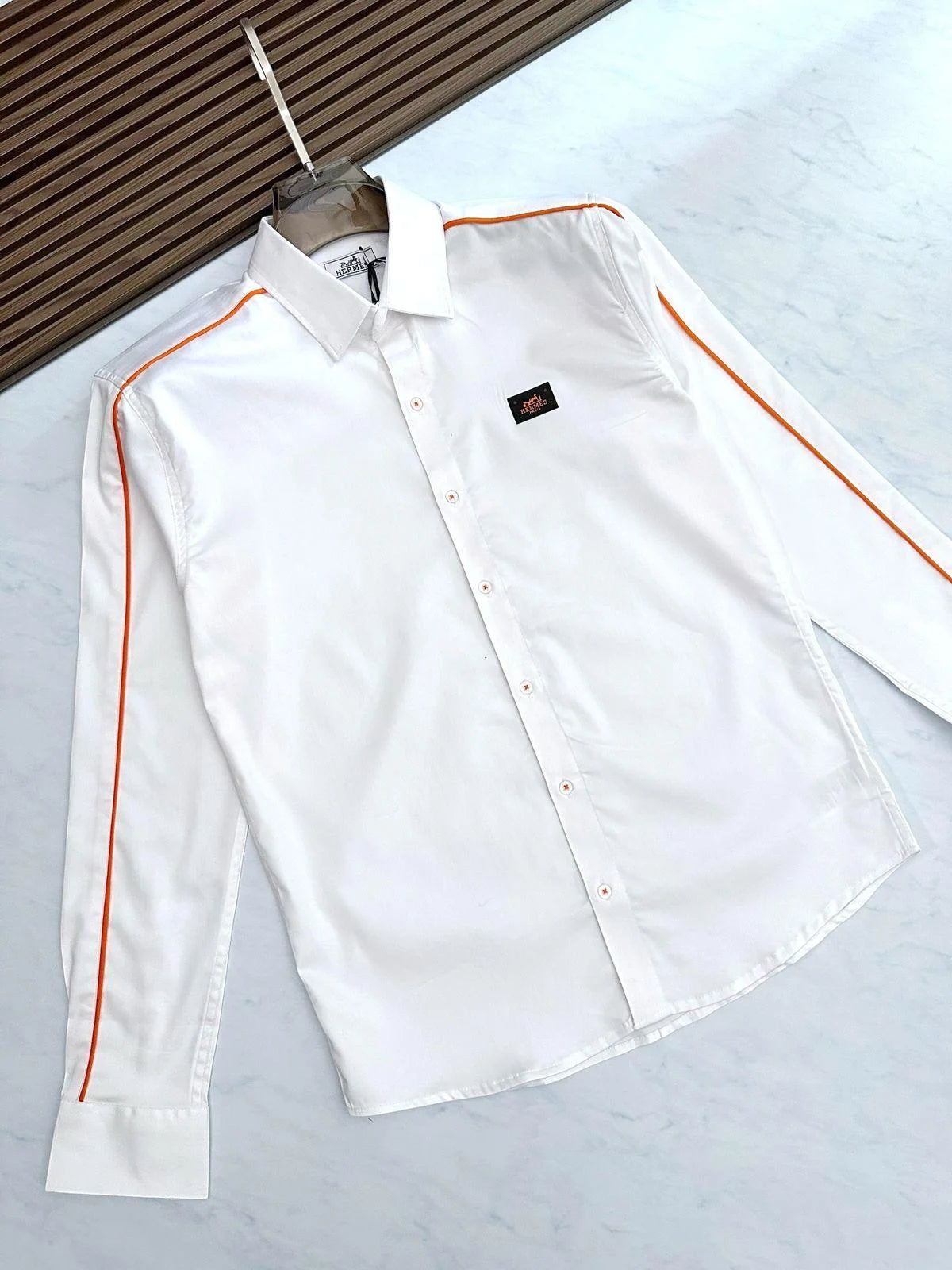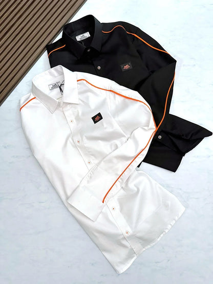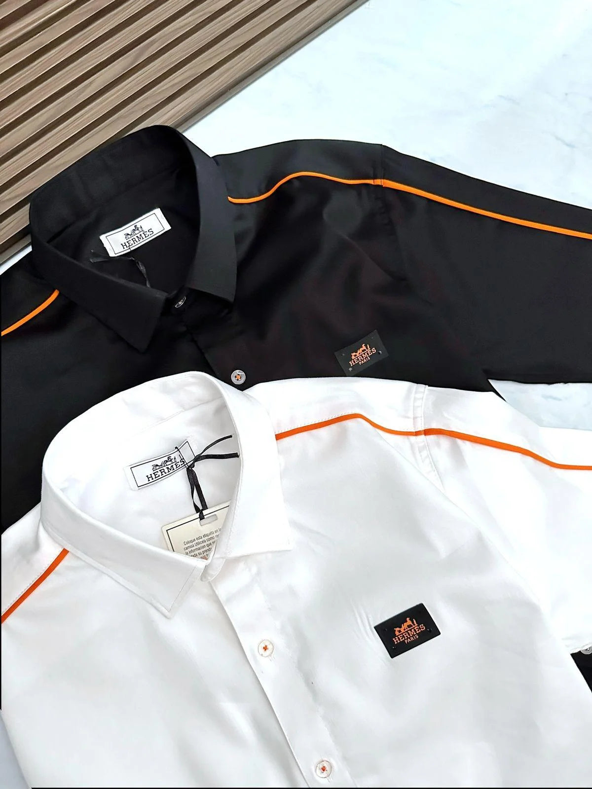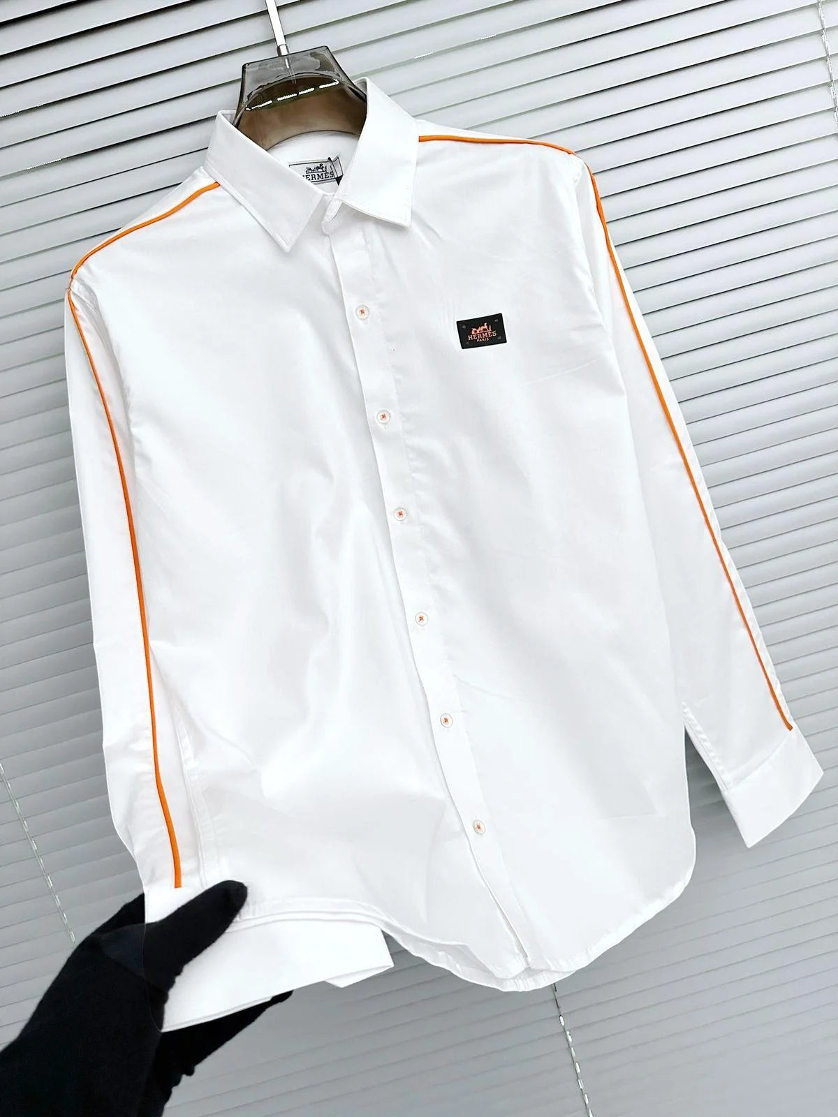 HERMES || Pure Cotton Satin Slim Fit Striped Casual Shirt