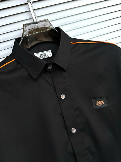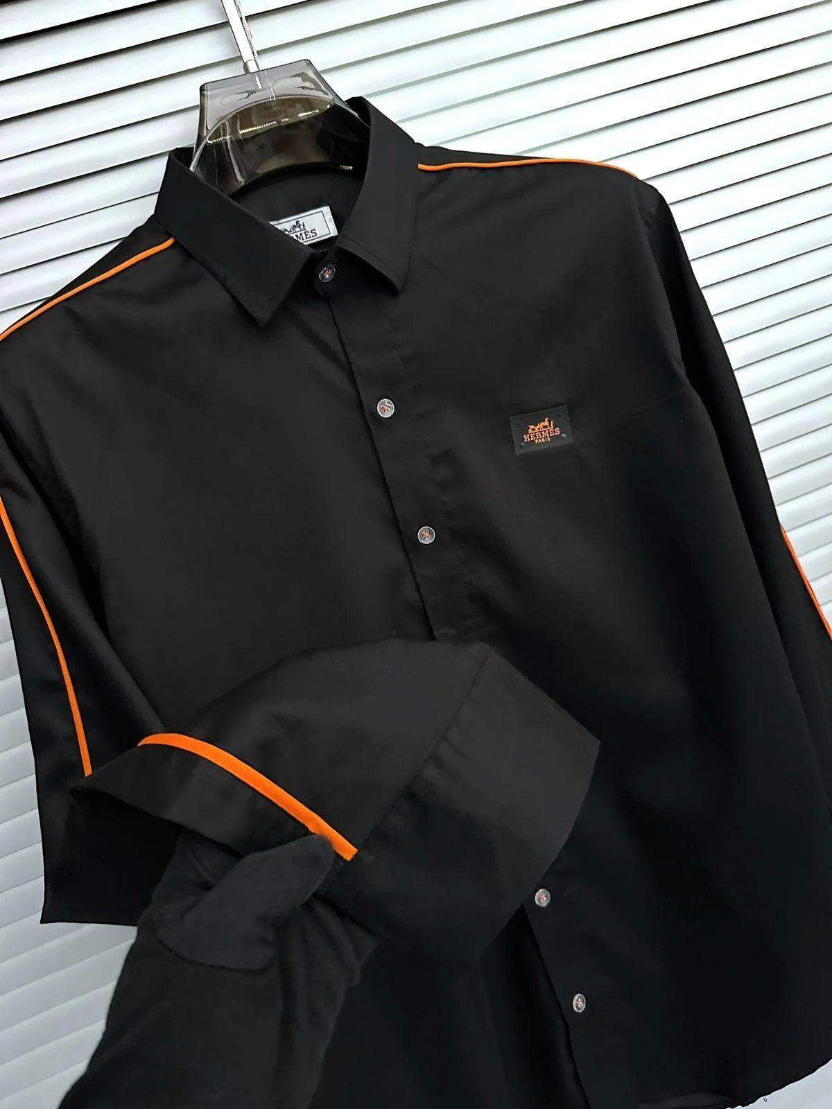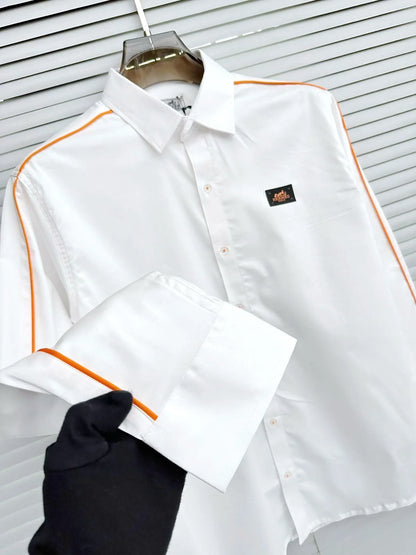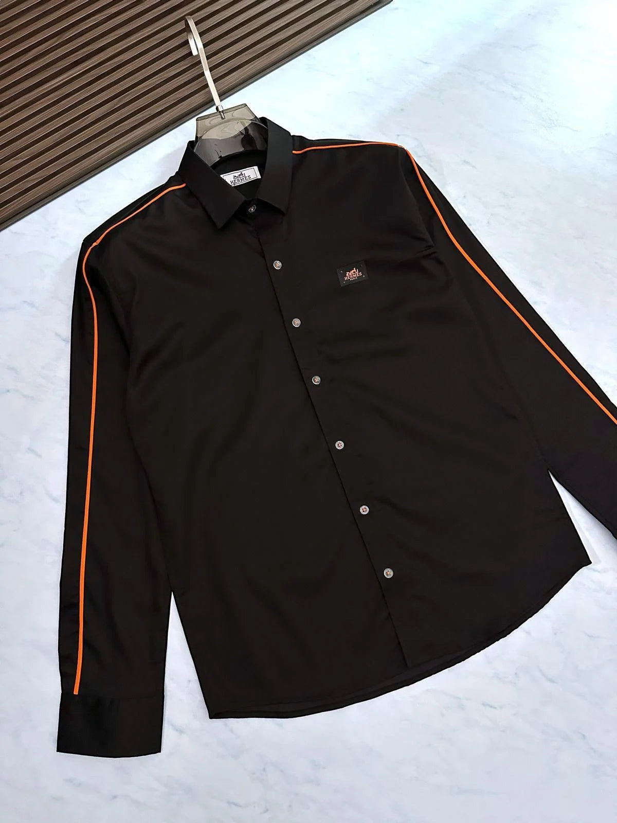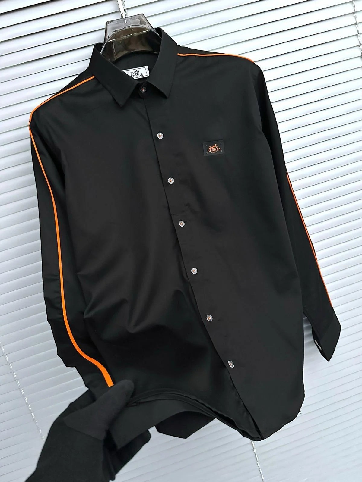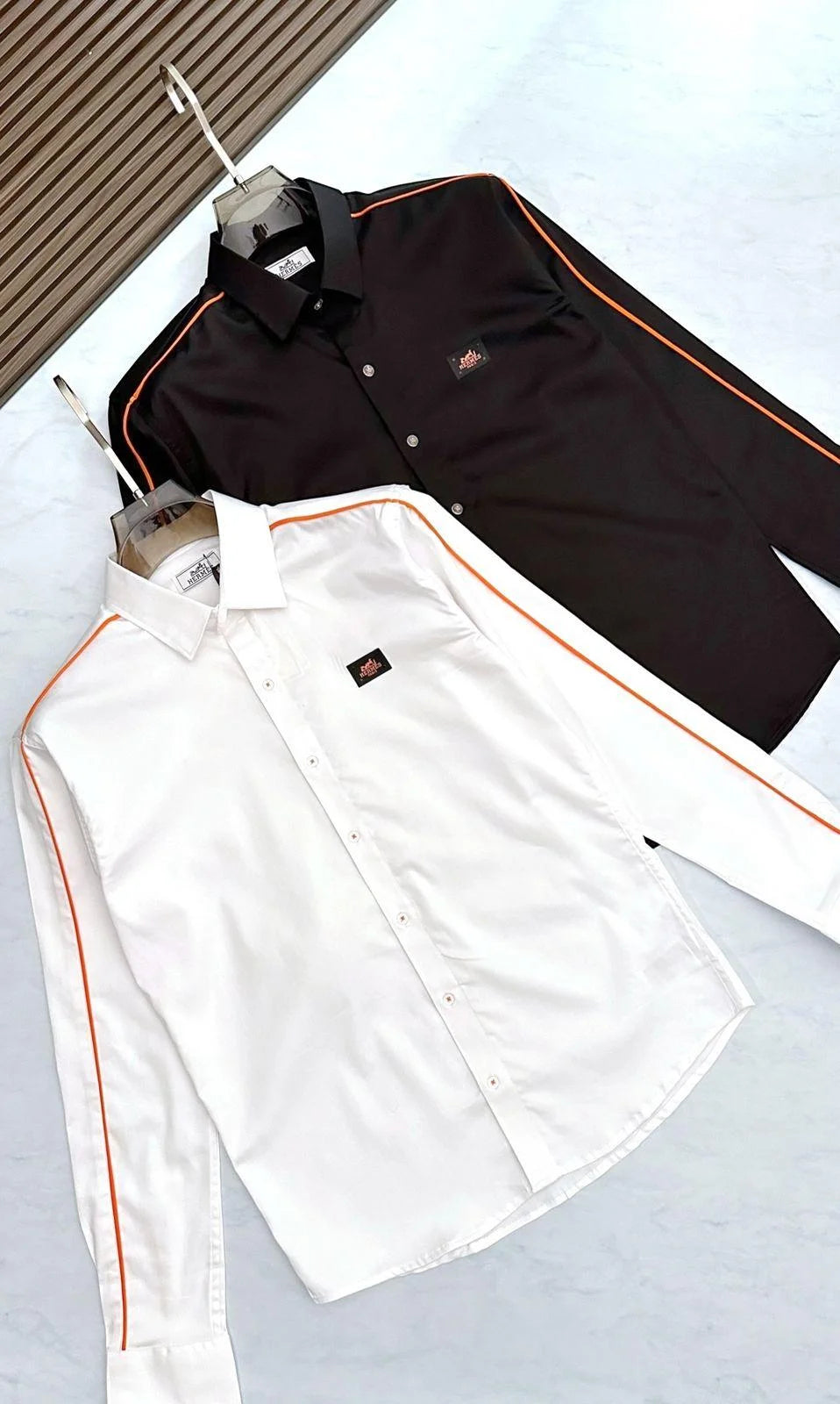 HERMES || Pure Cotton Satin Slim Fit Striped Casual Shirt