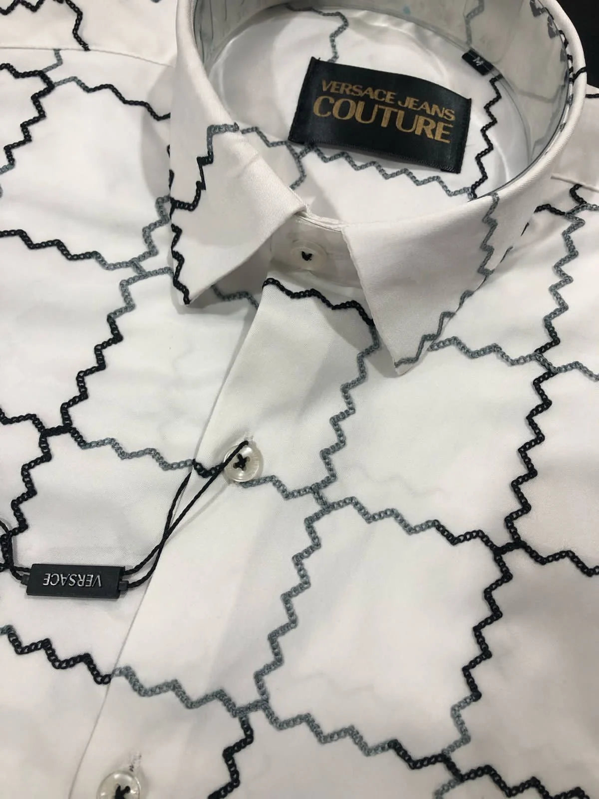 Take fashion risks and stand out in this bold VERSACE Men's Checkered Shirt! With a regular fit and checkered design, this shirt exudes confidence and adventure. Perfect for any casual occasion.