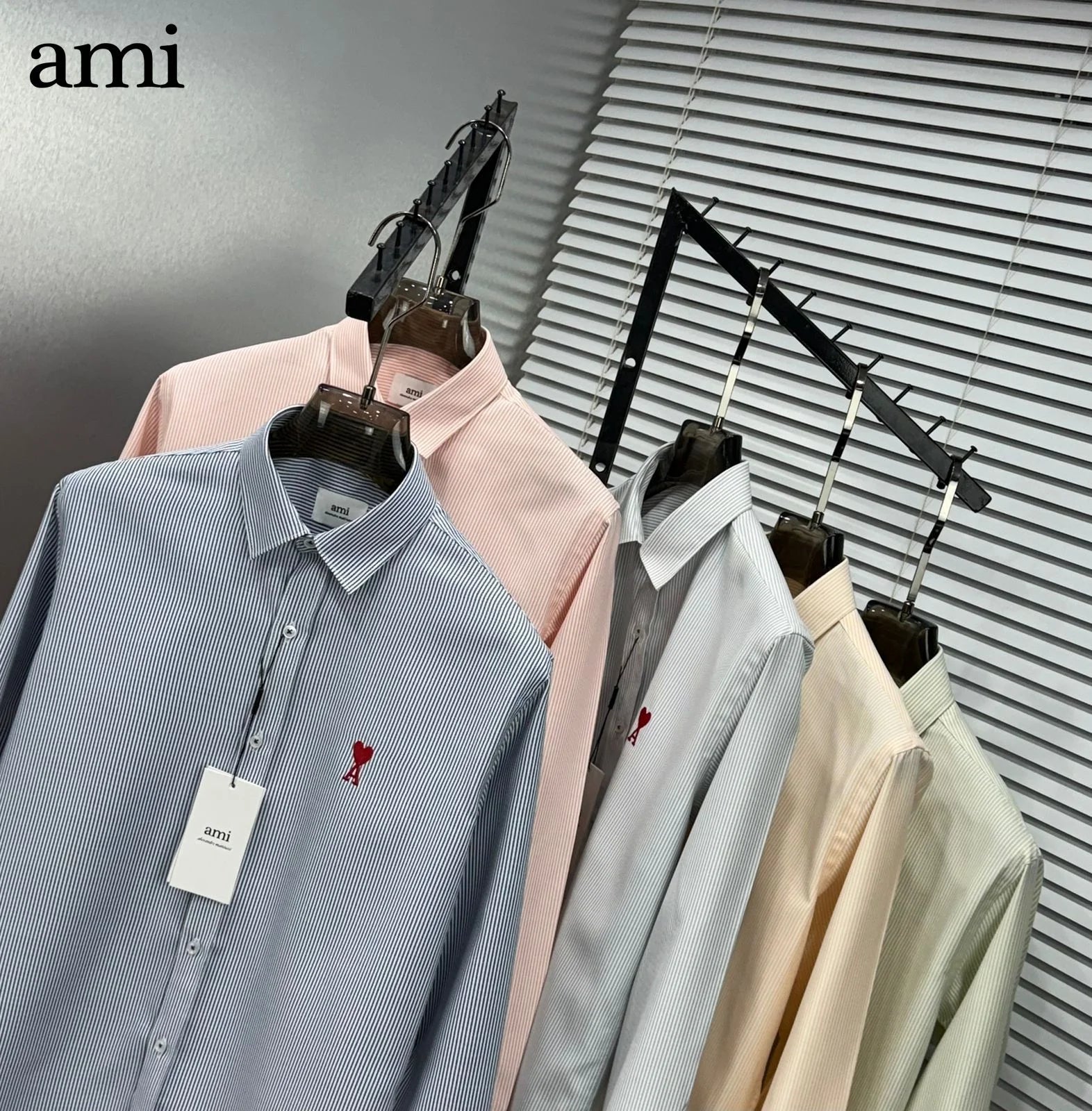 Elevate your wardrobe with AMI Paris's iconic Ami de Coeur striped button-down shirt—a fearless statement piece that merges Parisian sophistication with bold aesthetic confidence. Crafted with precision tailoring, this shirt features striking stripes that command attention while maintaining refined elegance. The classic button-down silhouette offers versatility for daring style choices, whether layered under a blazer or worn as a standalone statement. Perfect for those who refuse to blend in, this piece transforms everyday dressing into an act of sartorial rebellion. Embrace the audacity of French fashion.