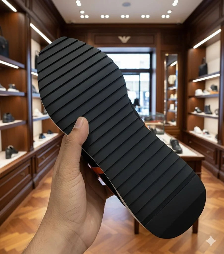 Step into bold style with these Arm*ni Exch*nge men's sneakers that command attention. The striking two-tone black and orange colorway creates instant visual impact, while the oversized side logo makes a fearless statement. Crafted for those who refuse to blend in, these sneakers deliver contemporary edge with premium construction. Perfect for streetwear enthusiasts who want their footwear to speak volumes about their fashion confidence. Elevate your sneaker game with a pair that's unapologetically daring.