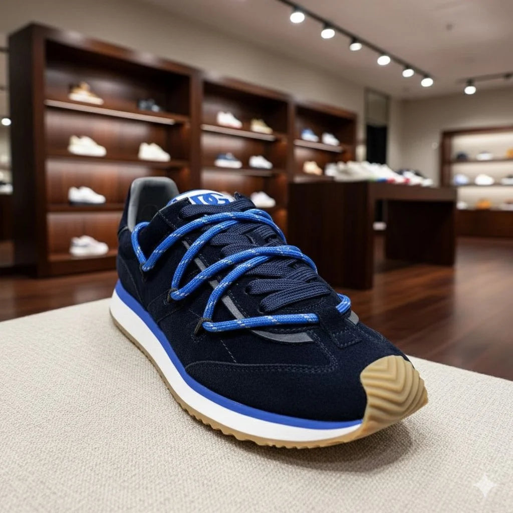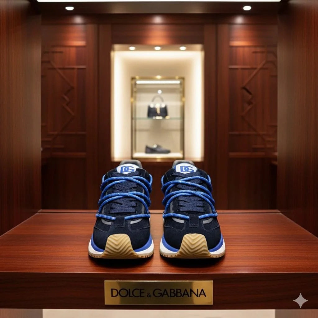 DOLCE & GABBANA || Men's Mixed-Material Sneakers in Navy and Electric Blue