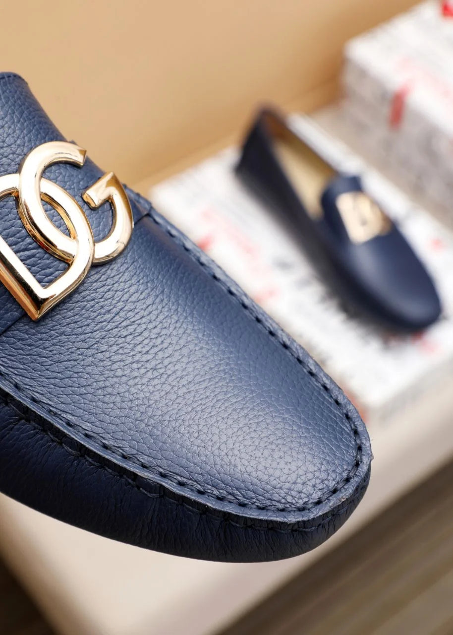 Step into bold sophistication with these Dolce & Gabbana men's loafers that refuse to play it safe. Crafted from rich navy grained leather, they deliver understated luxury with an unmistakable edge. The iconic gold DG logo commands attention without screaming for it—a signature touch that separates the discerning from the ordinary. Perfect for the man who knows that true style isn't about following trends; it's about owning them. Elevate your everyday with footwear that whispers confidence.