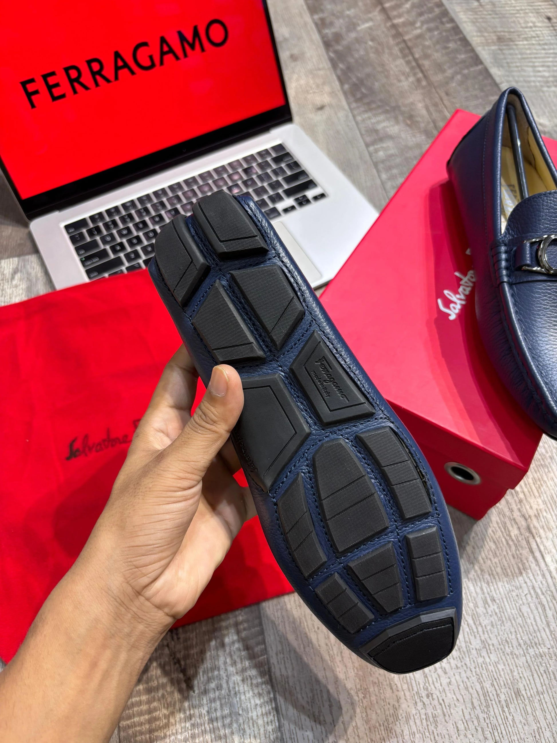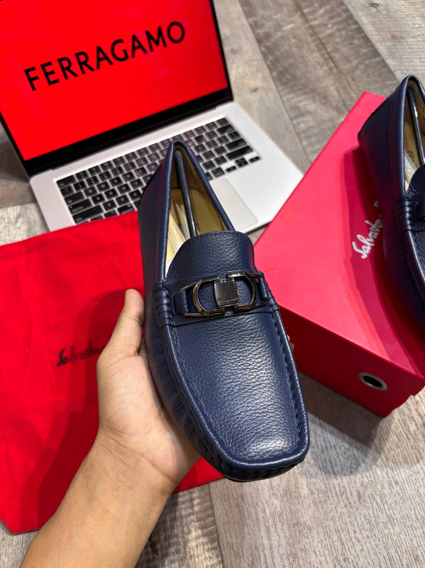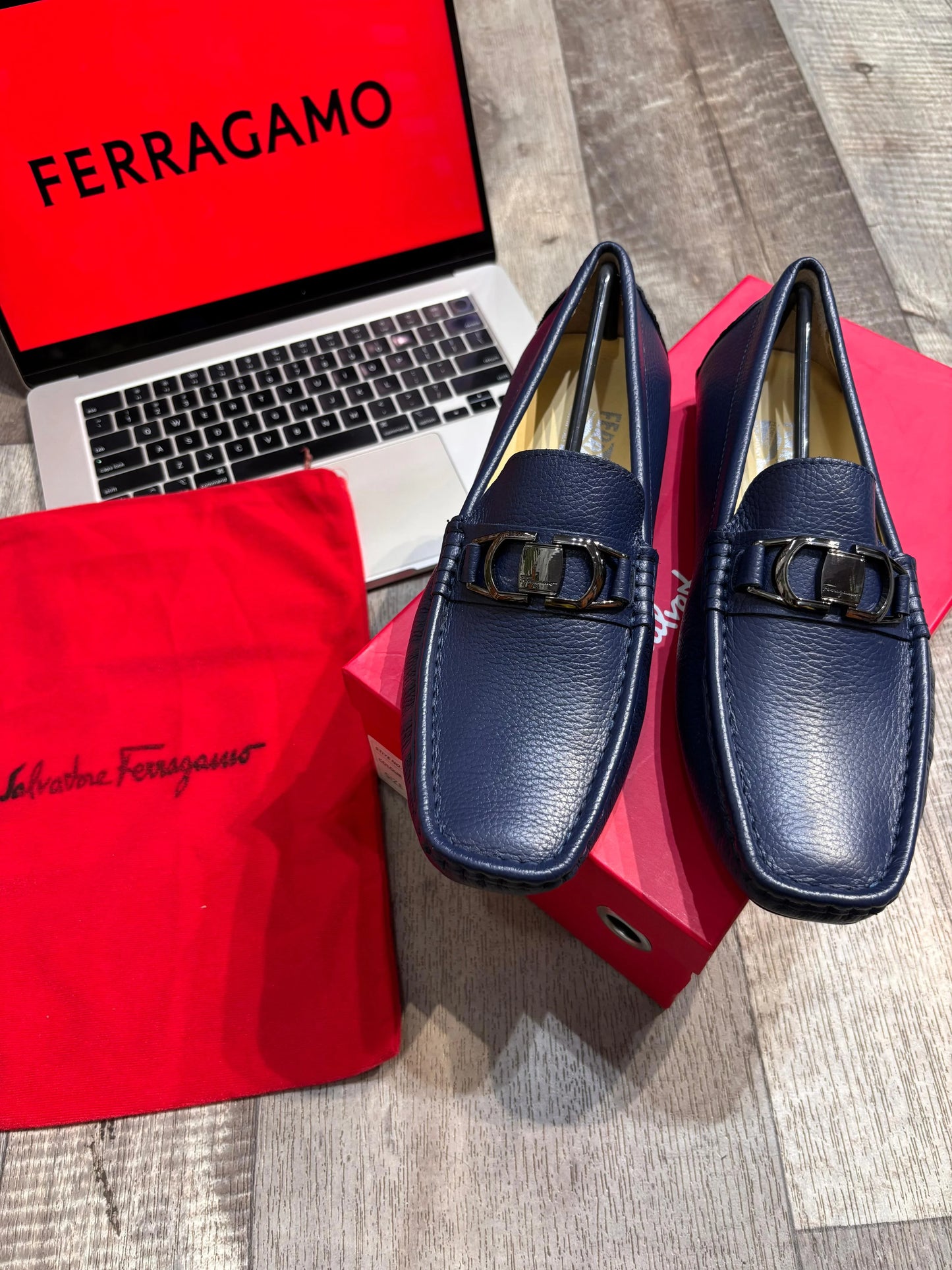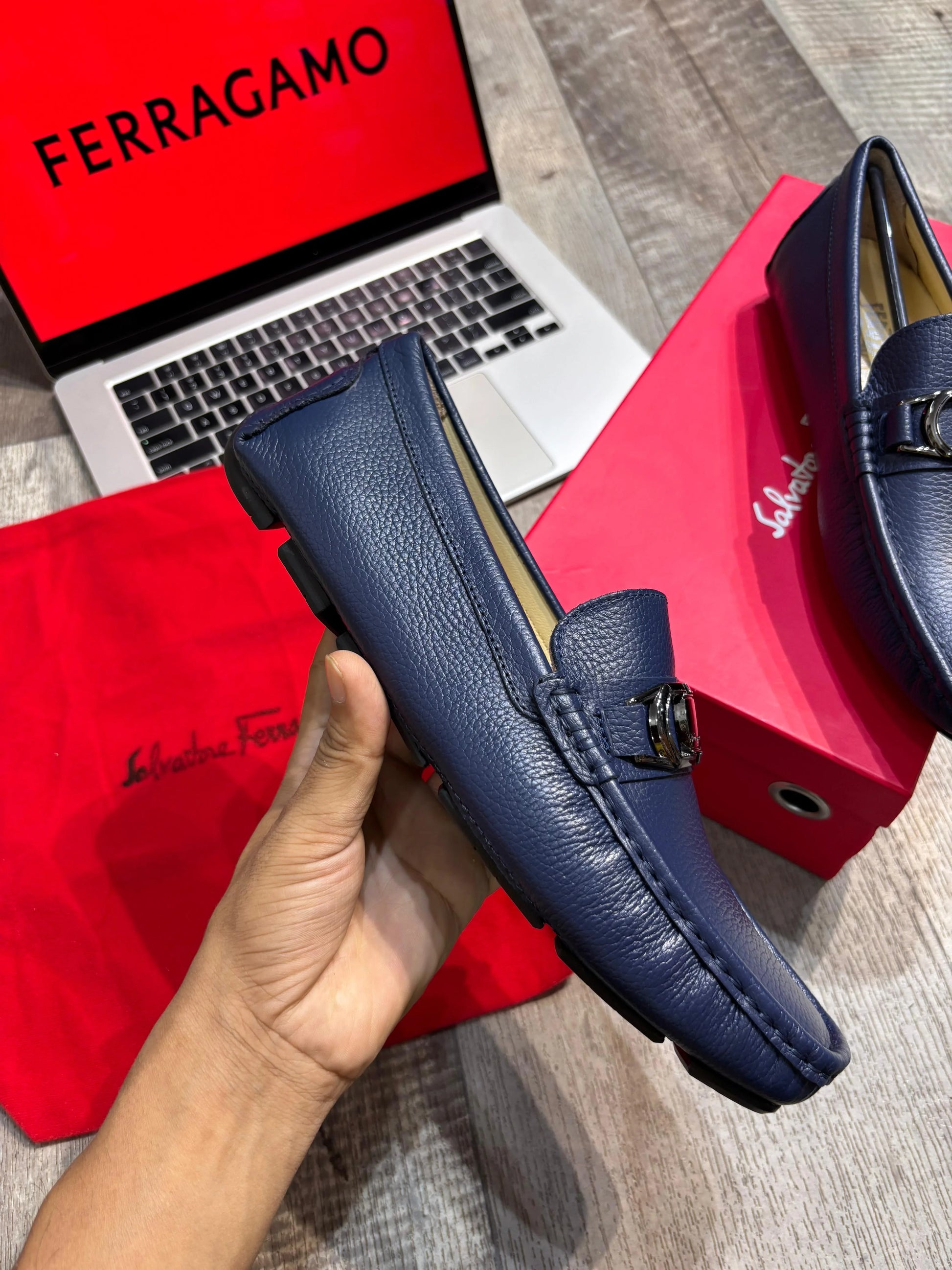 FERRAGAMO || Blue Leather Loafers – Luxury Formal Footwear