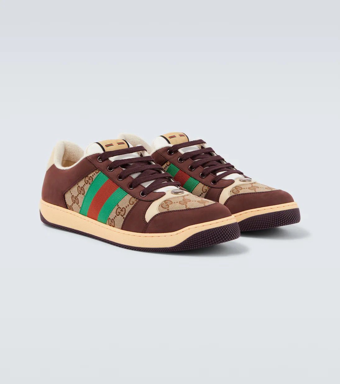 Step into bold style with Gucci's Men's Screener sneakers, where heritage meets contemporary edge. Crafted from premium GG canvas and supple leather, these kicks command attention with their striking brown and multi-color palette. The iconic interlocking G detailing signals unmistakable luxury, while the versatile colorway transitions seamlessly from street to statement. Built for those who refuse to blend in, these sneakers deliver comfort without compromising on attitude. Elevate your sneaker game with a pair that speaks volumes about your fearless fashion sensibility.