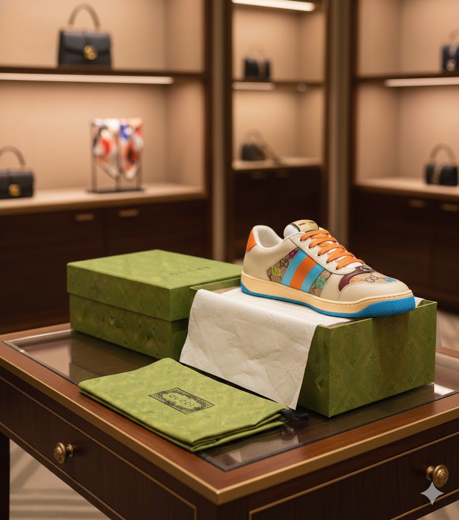 Step into bold style with these Gucci Screener Sneakers, where iconic GG canvas monogram meets striking blue and orange stripes. Crafted with the unmistakable luxury of Gucci's heritage, these sneakers command attention with their daring color-block design. Perfect for those who refuse to blend in, they elevate any outfit from casual to confidently courageous. Make a statement that's unmistakably yours.
