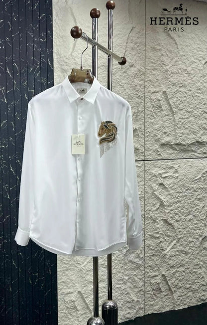 HERMES || Crystal-Embellished Horse Logo Shirt For Men