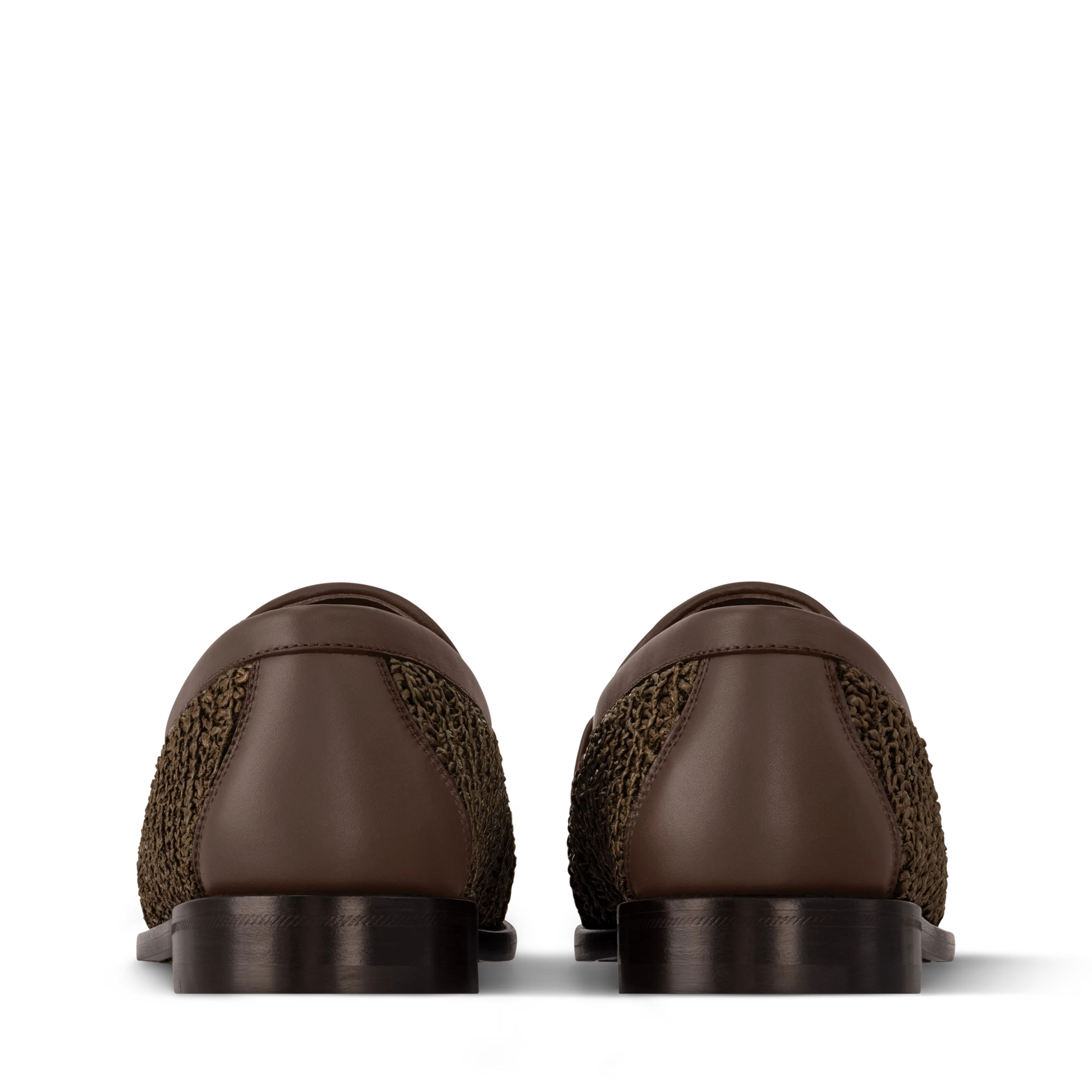 LOUIS VUITTON || Damier Graphite Knit Loafer with Gold LV Initial Ornament