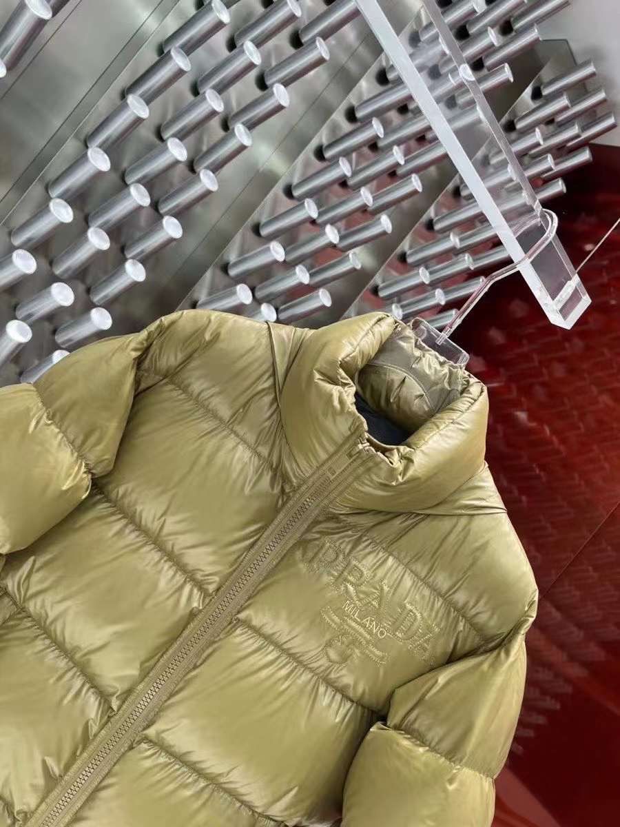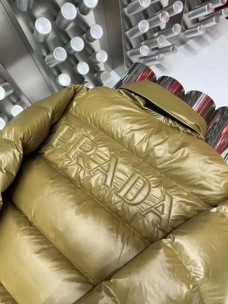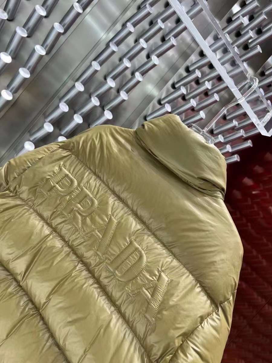 "The PRADA Short Unisex Nylon Street Style Plain Logo Down Jackets are perfect for those seeking a sleek and contemporary look. Made with high-quality materials, these jackets showcase the iconic PRADA logo and provide warmth and comfort in colder climates."
