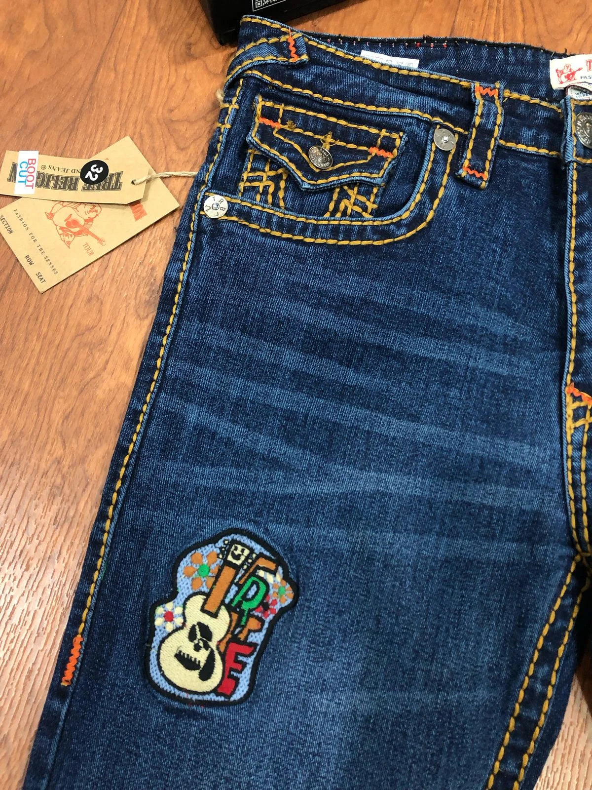 Experience the thrill of the ride in TRUE RELIGION || Rope Stitch Joey Flare Fit Mid Rise Washed Jeans. These jeans feature bold rope stitching, a flattering flare fit, and a mid-rise waist. Perfect for the risk-taker who wants to stand out and make a statement. Get ready to take on any adventure in style!