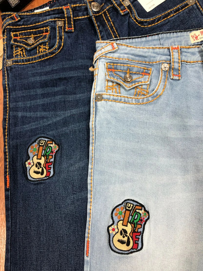 TRUE RELIGION || Rope Stitch Joey Flare Fit Mid Rise Washed Jeans
