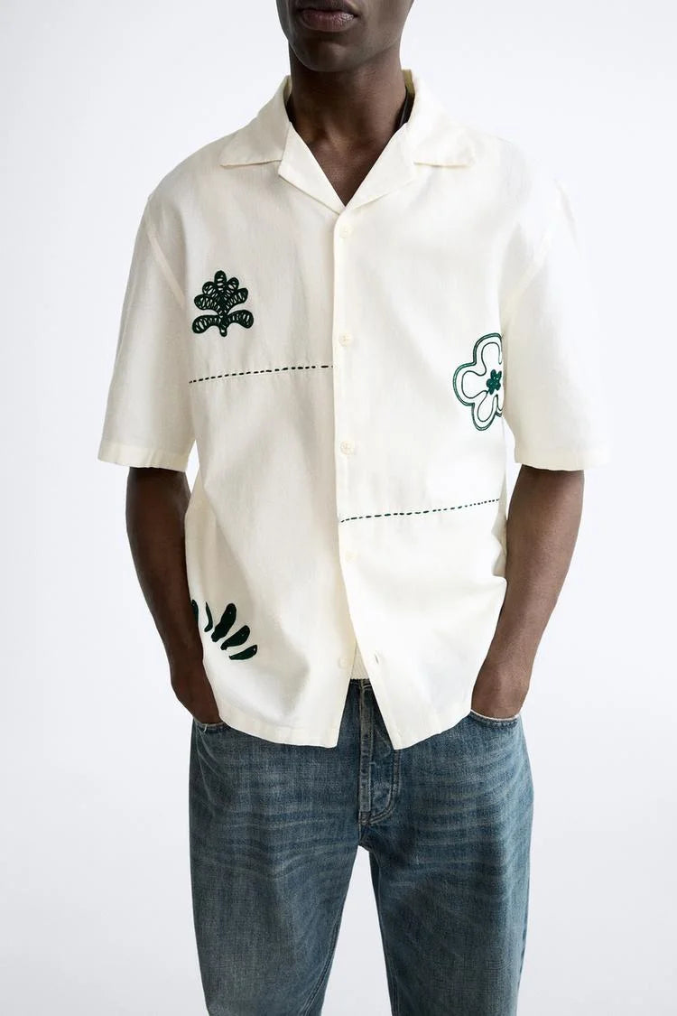 GUCCI || International Contrast Embroidered Shirt White